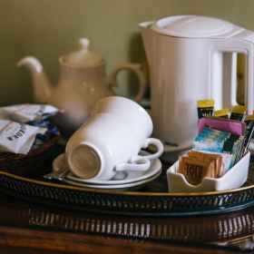 The double rooms have all been individually decorated, are centrally heated and equipped with LED flat screen televisions, Roberts digital radios and tea and coffee making facilities.